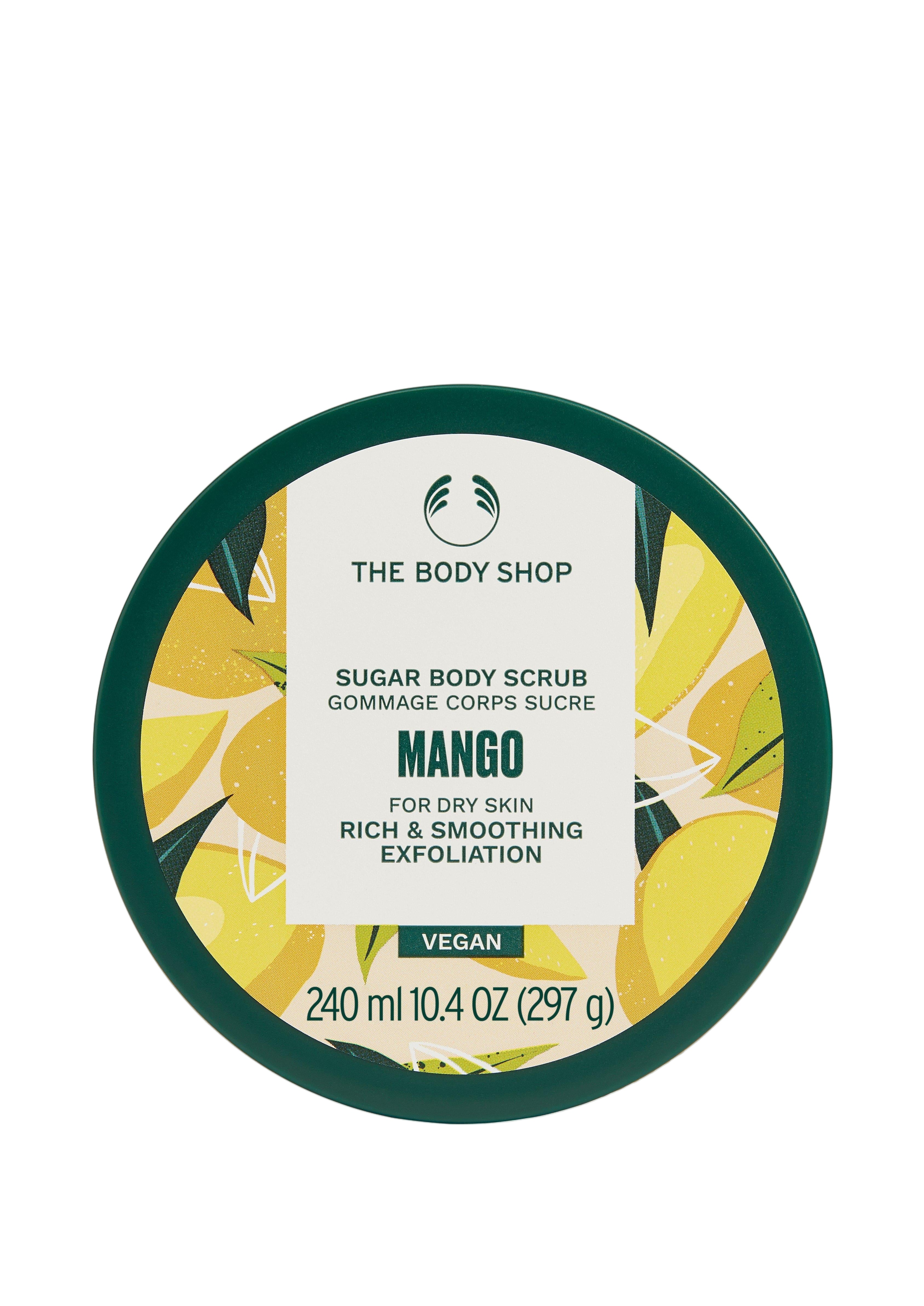 Þykkur sykurskrúbbur sem skrúbbar húðina kröftuglega og gefur góðan raka og næringu svo hún verður silkimjúk og ilmandi. Hentar vel fyrir mjög þurra húð. Inniheldur Community Fair Trade mangóolíu unna úr fræi ávaxtarins. Kemur í umbúðum gerðum úr 100% endurunnu plasti sem kemur meðal annars úr Community Fair Trade plastendurvinnslu verkefni The Body Shop á Indlandi. Þessar umbúðir má að sjálfsögðu endurvinna á ný séu þær flokkaðar rétt.