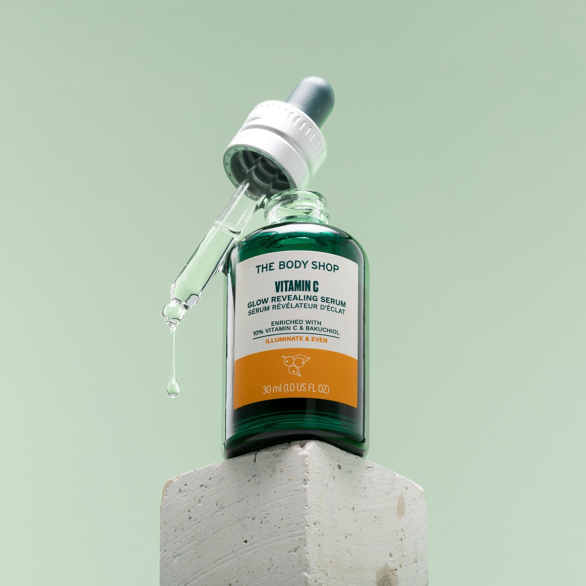 Vitamin C Glow-Revealing Serum jafnar húðlit og gefur þreytulegri og líflausri húð frísklegra og heilbrigðara yfirbragð. Serumið inniheldur náttúrlegt C vítamín í ríkulegu magni, eða um 10% og inniheldur þar að auki bakuchiol sem er náttúrlegt efni sem hefur sömu eiginleika og retinol, eykur teygjanleika og stuðlar að aukinni kollagenframleiðslu húðarinnar. Má nota bæði kvölds og morgna. Af 112 konum sem tóku þátt í rannsókn á seruminu sögðu 86% þeirra að húð þeirra væri frísklegri og heilbrigðari í útliti eftir 8 vikna notkun.