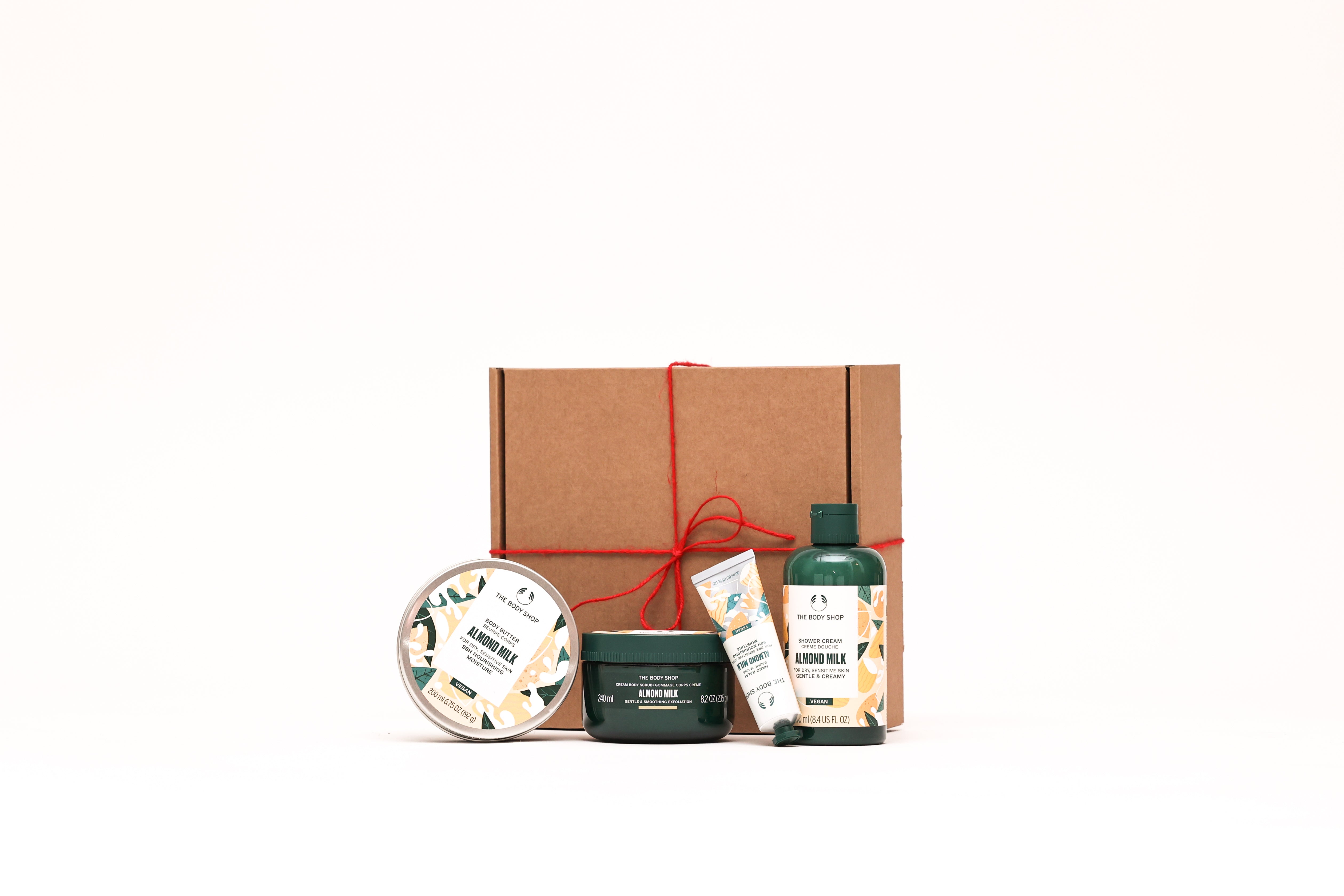 Falleg gjafapakkning með dekurvörum úr Almond Milk línunni. Gjöfin inniheldur ilmandi sturtusápu, mýkjandi Body Butter, nærandi handáburð og dásamlega mýkjandi skrúbb fyrir líkamann, allt vörur sem henta fyrir ofnæmisgjarna og viðkvæma húð. Í þessum vörum er sheasmjör frá Ghana og lífræn möndlumjólk frá Spáni, hvort tveggja innihaldsefni úr Community Fair Trade verkefnum okkar og vörurnar henta vel fyrir allar húðgerðir, en sérstaklega þurra og viðkvæma húð.